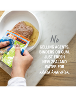 Crafted with wholefood New Zealand ingredients and selected vitamins and minerals, our new Pouch diets are a nutritious highly palatable pâté, blended with fresh New Zealand water for added hydration and provide the best blends of nature in nutrition for your cat. Made in New Zealand with sustainably caught Hoki and grass-fed, free-range Beef, this Hoki & Beef diet assists brain and eye development. Our Pouches are not only convenient, but also in a mess-free and easy-to-use single serve.